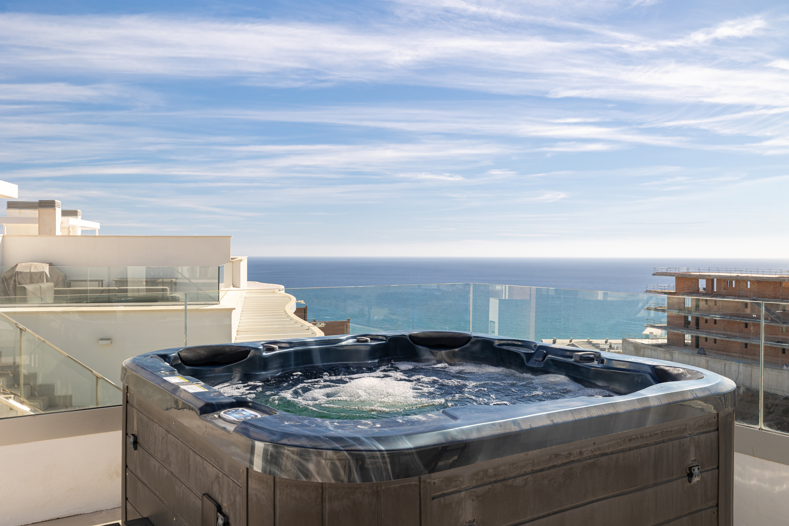 Step inside and feel the light flood through every corner, connecting the elegant interiors with panoramic 180º sea views, stretching from the Bay of Fuengirola to the Bay of Benalmadena. Every detail has been designed for comfort, sophistication, and the art of living well.